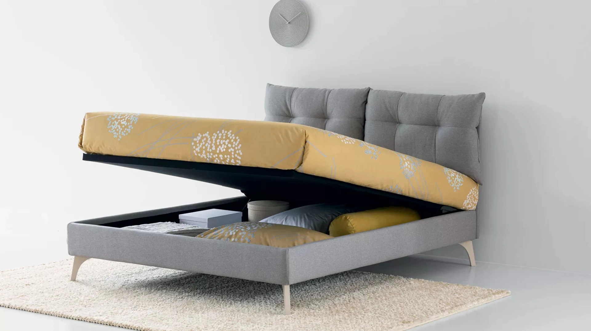 Scopri una ricca gamma di letti con contenitore delle migliori marche di Arredamento Casa disponibili nel nostro showroom e valorizza la tua camera. Nel nostro sito troverai le migliori proposte delle migliori marche specializzati nell'arredo per la zona del riposo, con un’ampia possibilità di personalizzazione in quanto a colori e abbinamenti, elementi accessori e molto altro. La camera è il luogo di casa che più riflette la personalità di chi la utilizza, locale per eccellenza dedicato al relax, alla distensione e alla riservatezza. Se desideri garantirti il comfort più totale nei tuoi momenti di relax, scegli i Letti matrimoniali moderni in tessuto come il modello mostrato in foto.